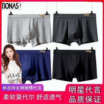 宝娜斯男士内裤莫代尔平角内裤纯棉男生短裤透气四角裤头底裤衩